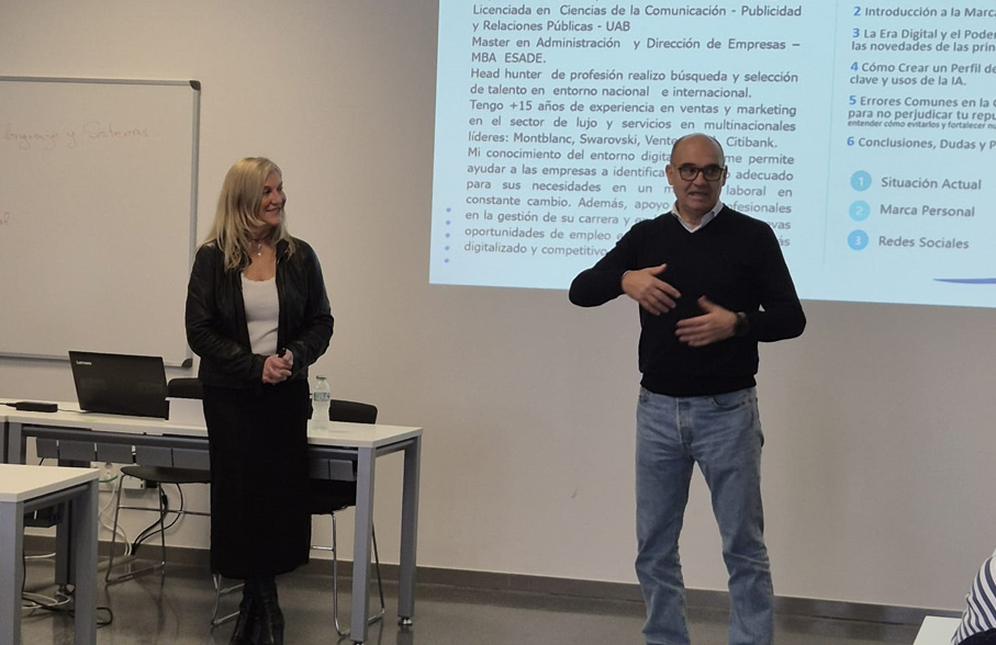 Durante la sesión, los asistentes trabajaron de forma práctica y participativa en cómo construir una presencia digital sólida y coherente, partiendo de una reflexión clave: qué es realmente la marca personal y por qué se ha convertido en un elemento estratégico para el crecimiento profesional. A lo largo del encuentro, se abordaron las claves para diferenciarse en redes sociales, con especial atención a LinkedIn como principal canal de visibilidad y networking profesional.